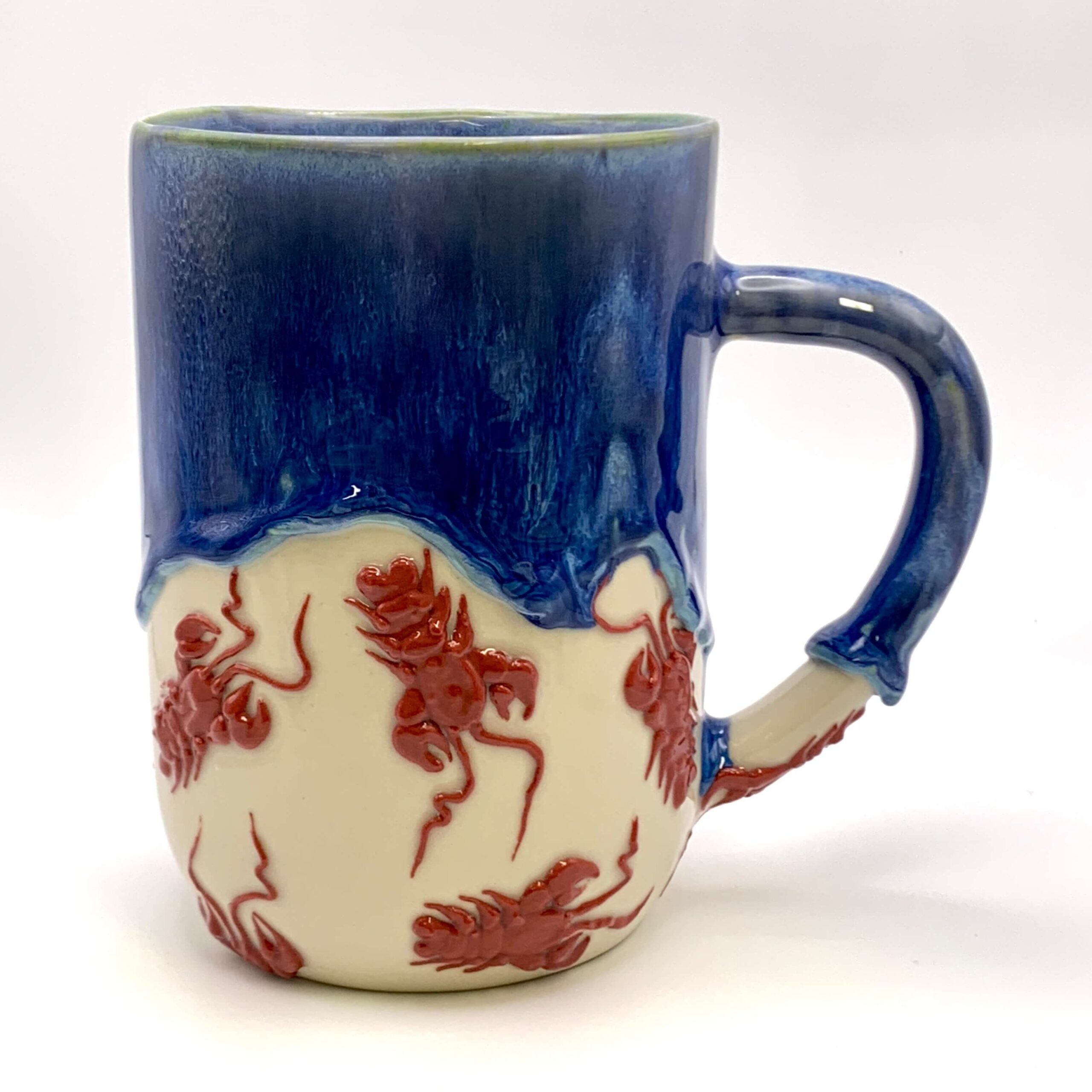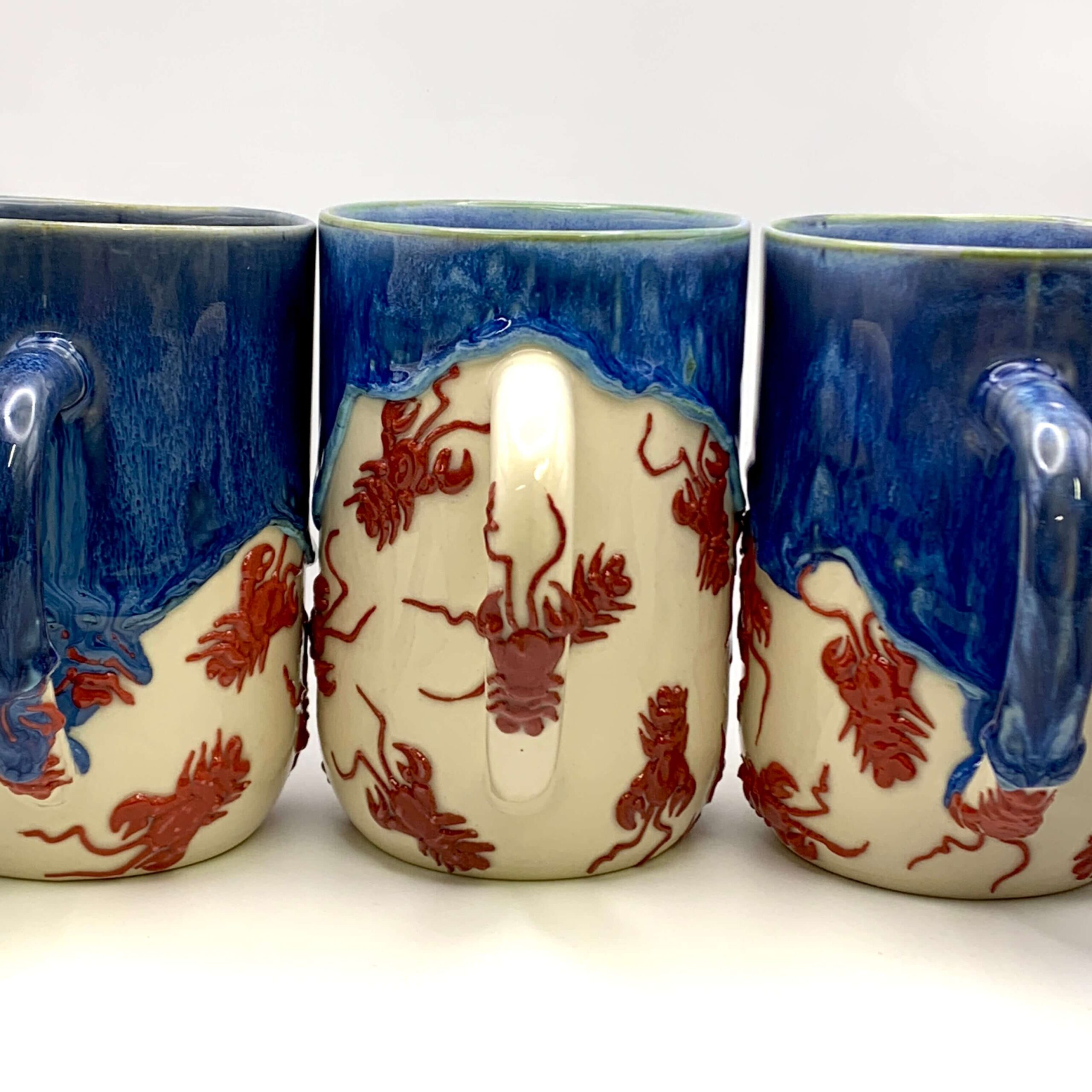 Embrace coastal living with our unique handmade mug featuring 3D lobsters hand-piped around its surface. Each piece is a unique work of art, meticulously crafted from high-quality, durable mid-stoneware.