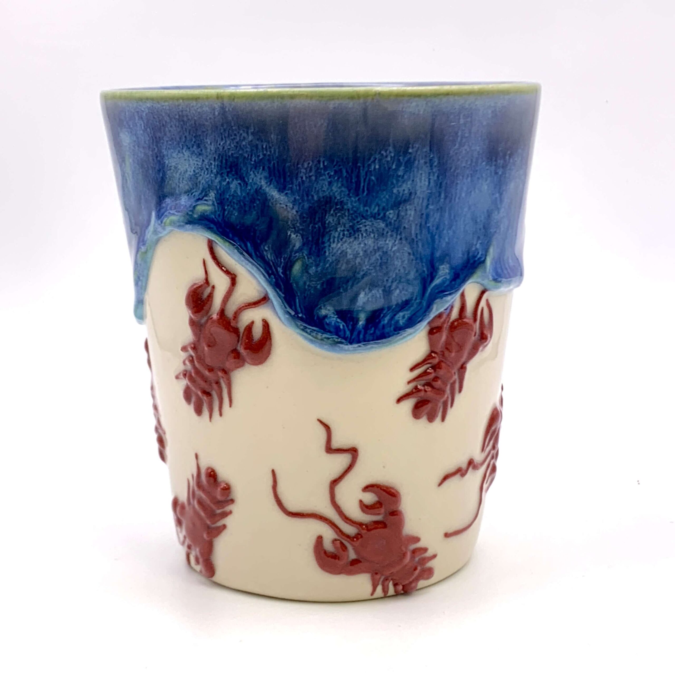 Embrace coastal living with our unique handmade mug featuring 3D lobsters hand-piped around its surface. Each piece is a unique work of art, meticulously crafted from high-quality, durable mid-stoneware.